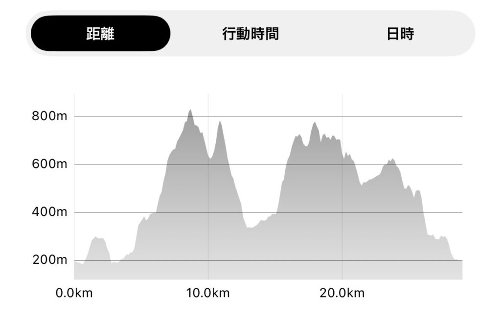 20kmを過ぎると、地図では分かりづらい細かなアップダウンが延々と続く。しかも急登。